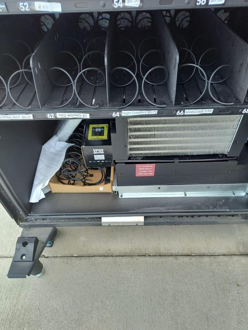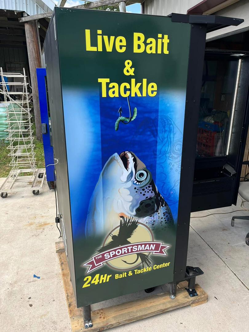 Vending machine for outside or inside use. Good for 24/7 bait and tackle sale.