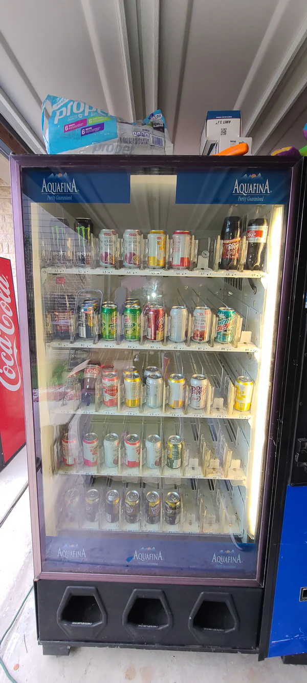 Vends a variety of different items from 12oz cans to 20oz bottles.